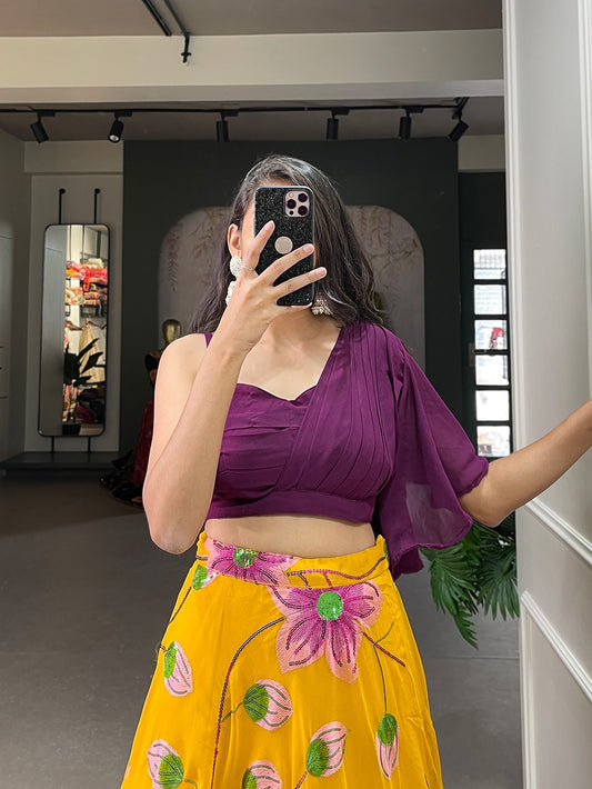 Wine and Mustard sequins georgette Lehenga set with Stitched Blouse